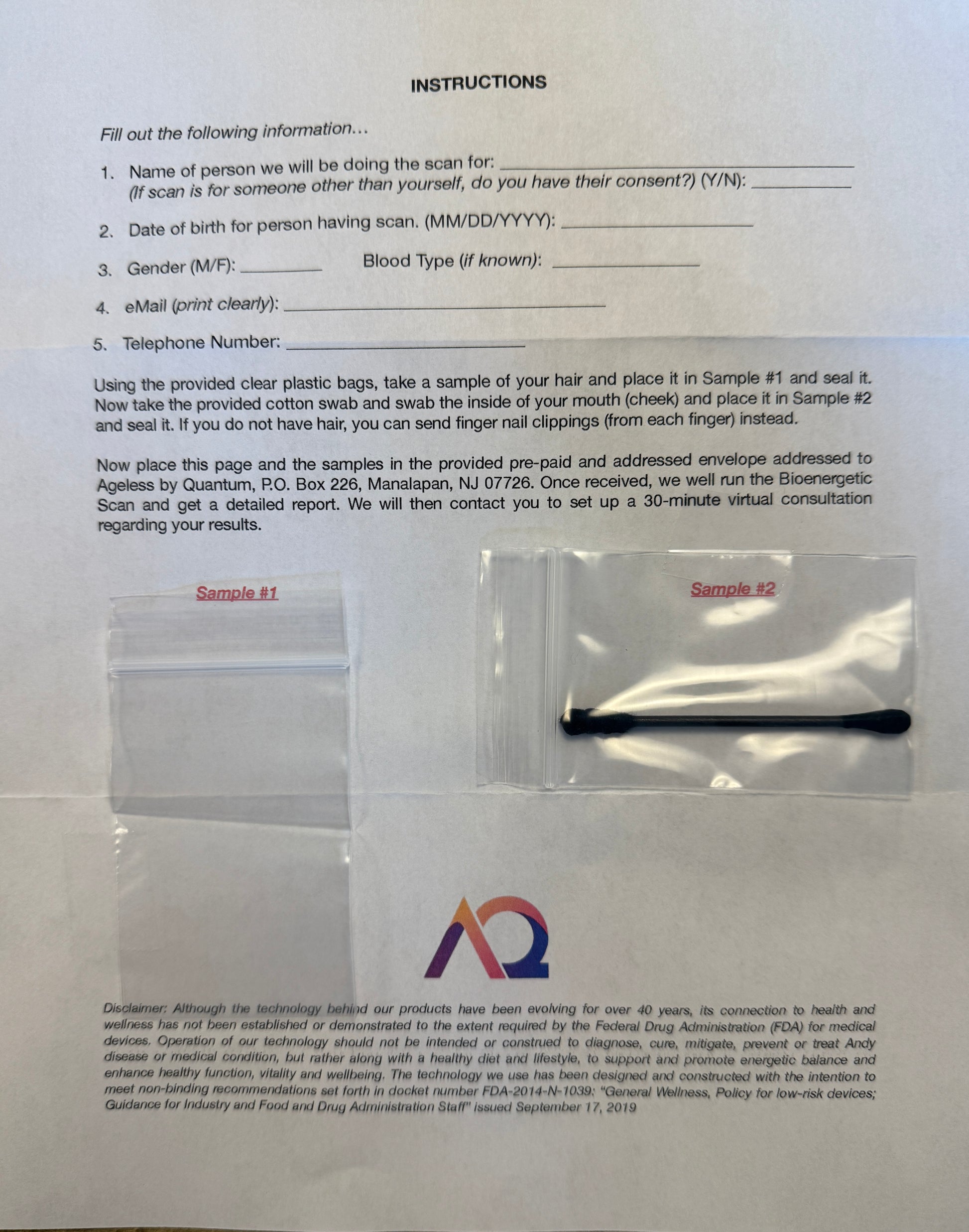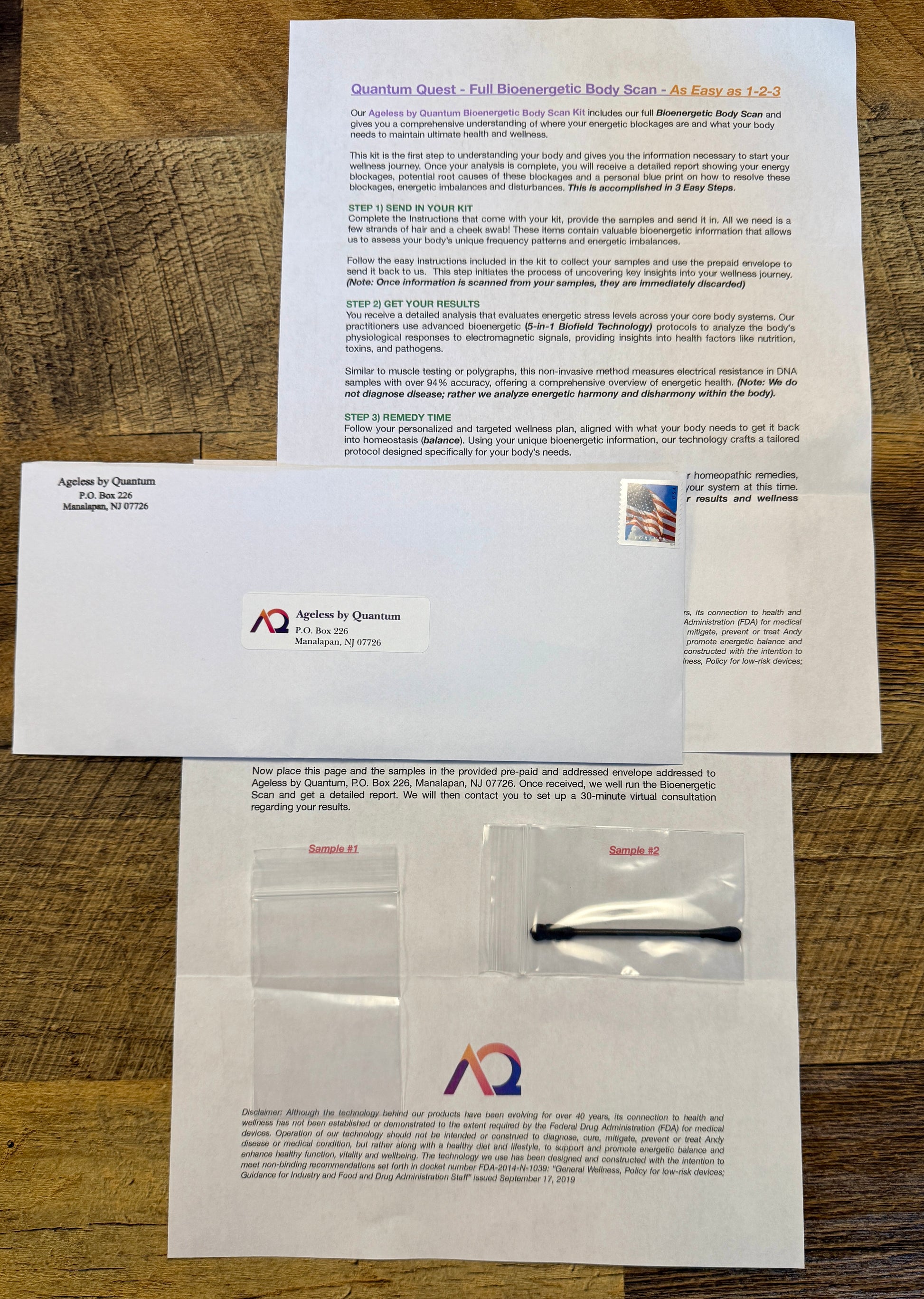 Upon payment, we will ship the kit out to you. When your receive it, follow the instructions to get your samples back to our company so we can perform the bio scan and then email your report to you.
